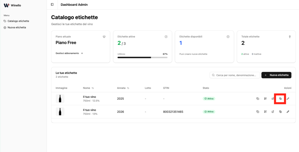 Duplicare un’etichetta su Winello